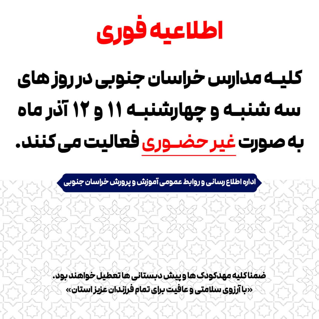 مدارس خراسان جنوبی غیر حضوری شد 1404-09-10