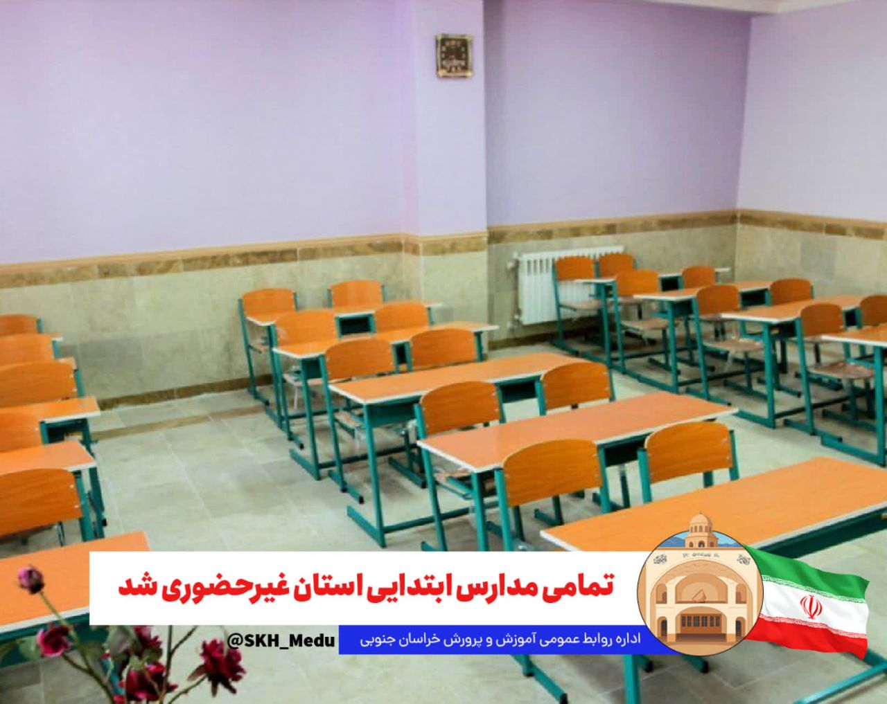 فعالیت تمامی مدارس ابتدایی استان خراسان جنوبی، فردا یکشنبه ۳۰ آذرماه، بهصورت غیرحضوری برگزار خواهد شد.